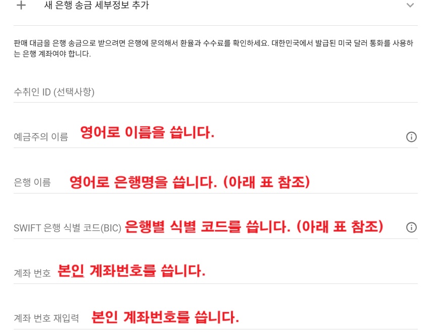 4. 결제 수단 추가에서 새은행 송금 세부 정보 추가를 클릭합니다.
