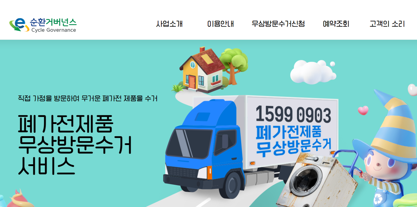 소형가전의 경우 사는 곳에 따라 재활용장에 배출하면 무상수거가 가능합니다. 하지만 무겁고 큰 폐전자 제품을 버릴때는 E-순환거버넌스로 무상 수거를 신청하실 수 있습니다. 인터넷, 모바일, 콜센터 등으로 배출신청하시면 예약하신 날짜에 전문 수거매니저가 집안까지 방문하여 안전하게 수거합니다.