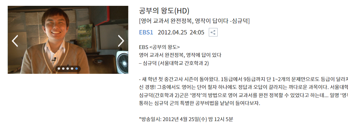 대학생일 때 '영작의 달인'으로 방송 출연도 했었네요.