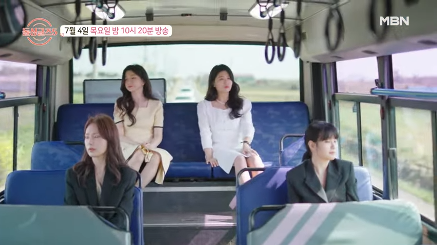 돌싱글즈5 여자 출연자들을 태운 버스입니다.