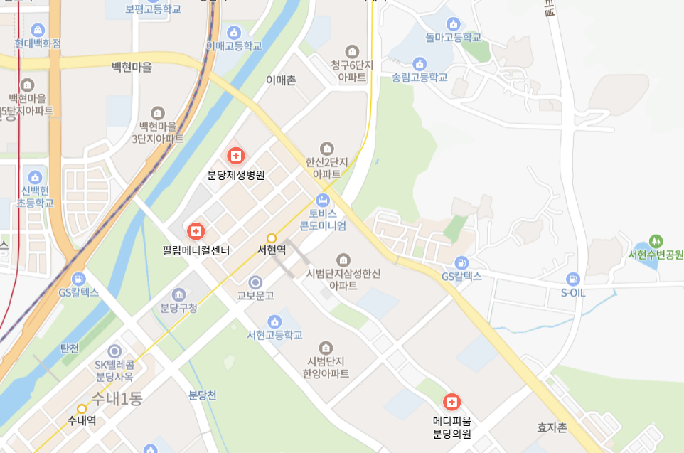 분당 서현의 종합병원은 3개 정도 나옵니다. 새봄의 직장은 이 세 곳 중 하나일 것 같습니다.