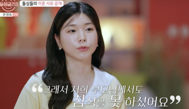 시댁의 반대로 양가 부모님 모두 참석하지 못하고 결혼식을 올렸다고 말했습니다.