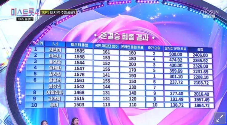 실시간으로 순위가 변동되어 시청자들의 주목도가 높아질 수 밖에 없었습니다.