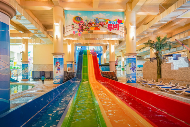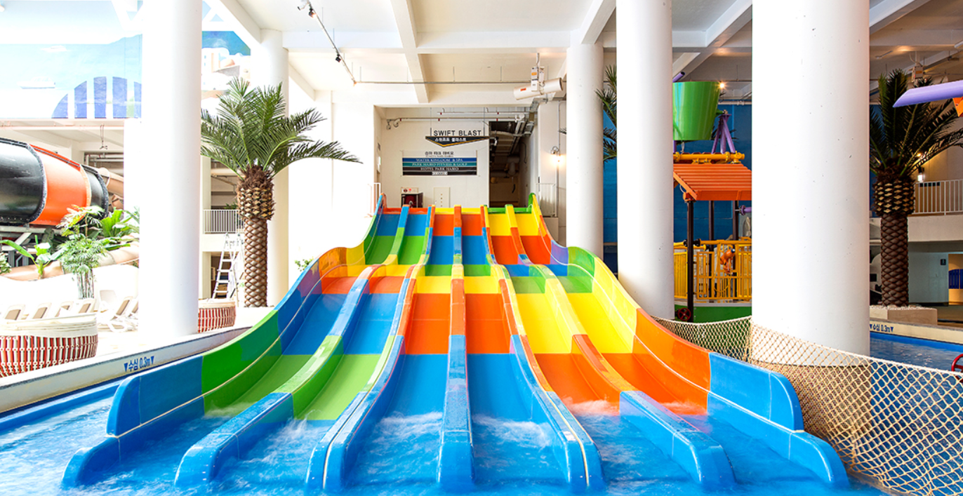 웅진 플레이도시는 도심형 종합 레저 스포츠 패밀리 테마파크 입니다. 다양한 워터 슬라이드를 즐길 수 있는 짜릿한 워터파크와 지하 1300미터 천연암반온천수가 가득한 온천을 함께 즐길 수 있습니다.