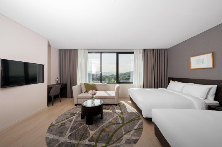 ‘화성 롤링힐스 호텔’은 아이를 동반한 가족 여행 숙소로 유명합니다. 객실은 총 228개로 크게 스탠다드, 스위트 타입으로 구분되며, 침대 구성에 따라 스탠다드 슈페리어, 스탠다드 디럭스, 스탠다드 패밀리 트윈, 스튜디오 스위트, 비즈니스 스위트 등으로 나뉩니다.