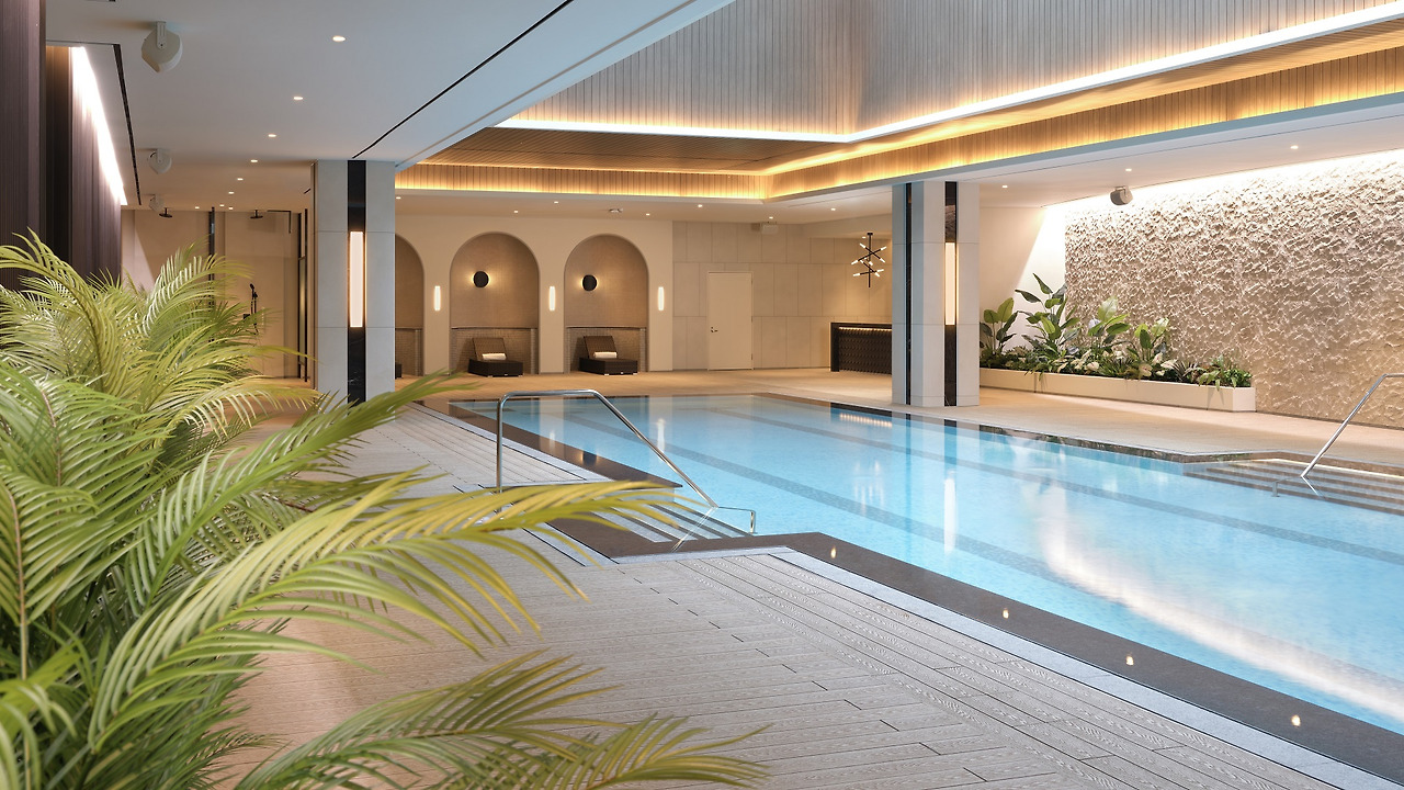 롤링힐스의 수영장은 오존 살균 정수 시스템을 갖춰 쾌적한 수질을 자랑하고 통유리로 되어 있어 탁 트인 전망을 감상하며 물놀이를 즐길 수 있습니다. 수영장 외에도 피트니스센터, 스파, 탁구장, 산책로, 키즈존 등 다양한 시설을 갖추고 있습니다.