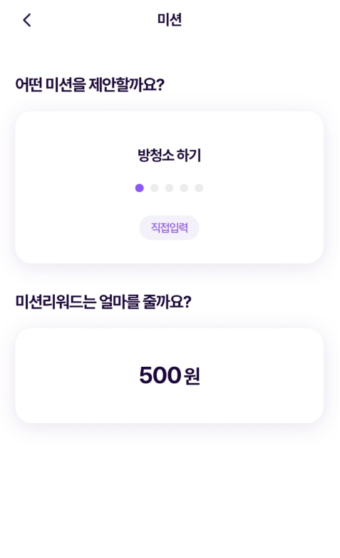 카드 없이 모바일로도 결제가 되고 100원, 200원처럼 동전 단위의 돈을 줄 때도 동전 없이 편하게 작은 단위로 '보내기'가 가능합니다. 정기 용돈 설정은 물론, 숟가락 놓기, 방 청소하기 등의 간단한 미션을 지정하고 수행하여 용돈을 주는 기능도 있습니다.