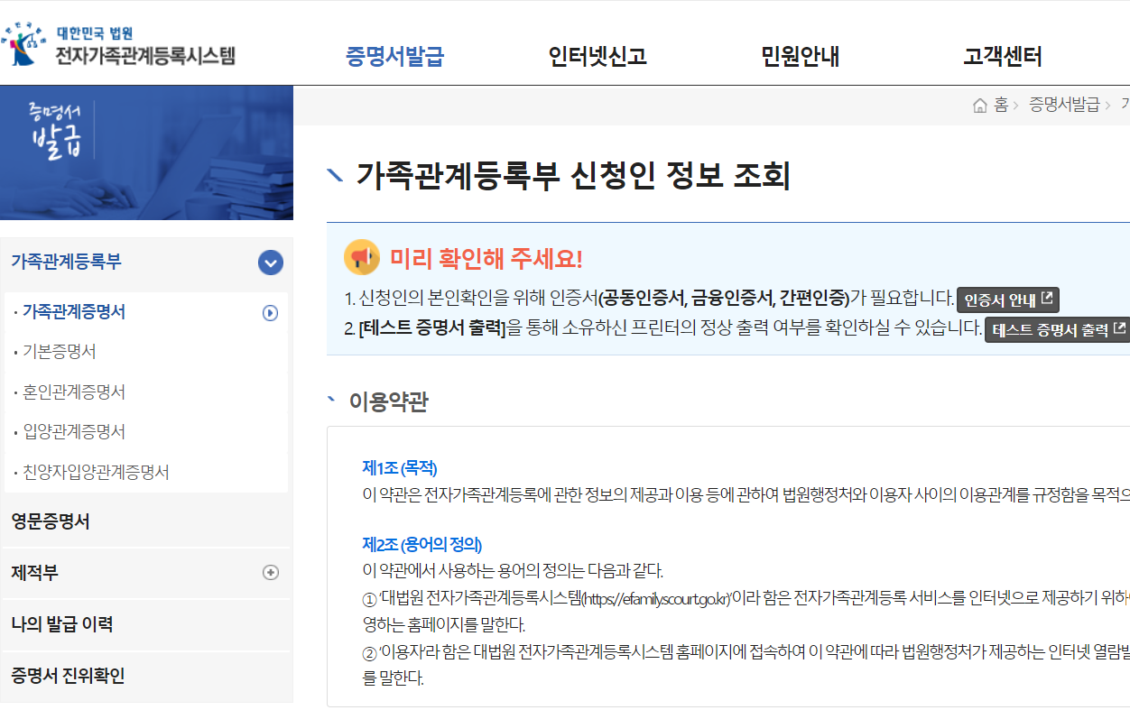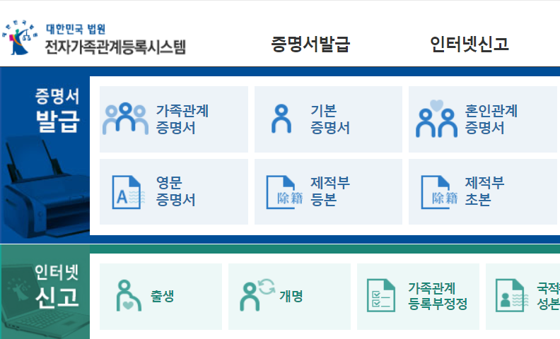 별도의 주민센터 방문 없이 온라인에서 대한민국 법원 전자 가족관계 등록 시스템을 통해 발급 가능합니다.