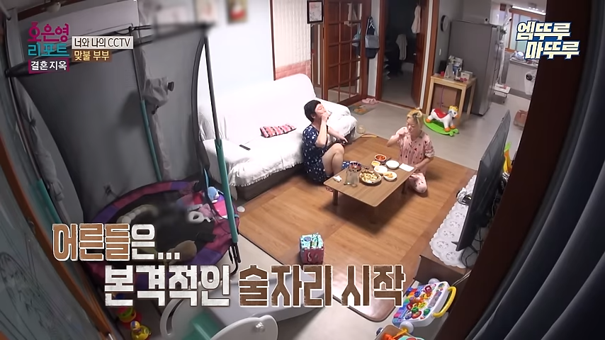 남편은 출근 때문에 10시에 잠들고, 아내는 지인들과 새벽까지 술자리를 계속합니다.
