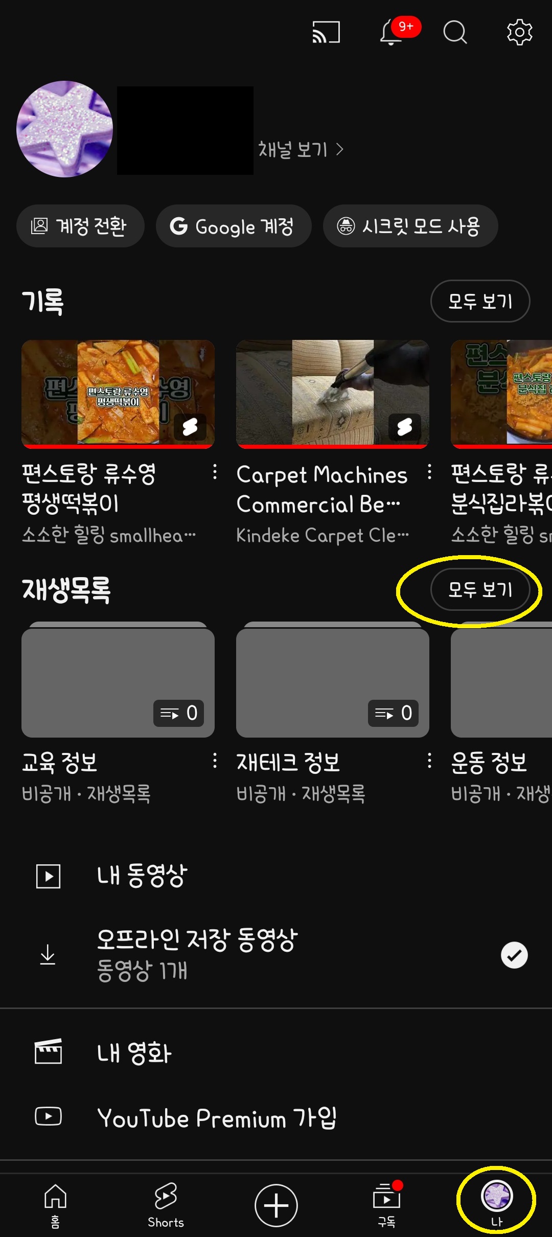 2) 재생목록에서 '모두보기'를 누릅니다.