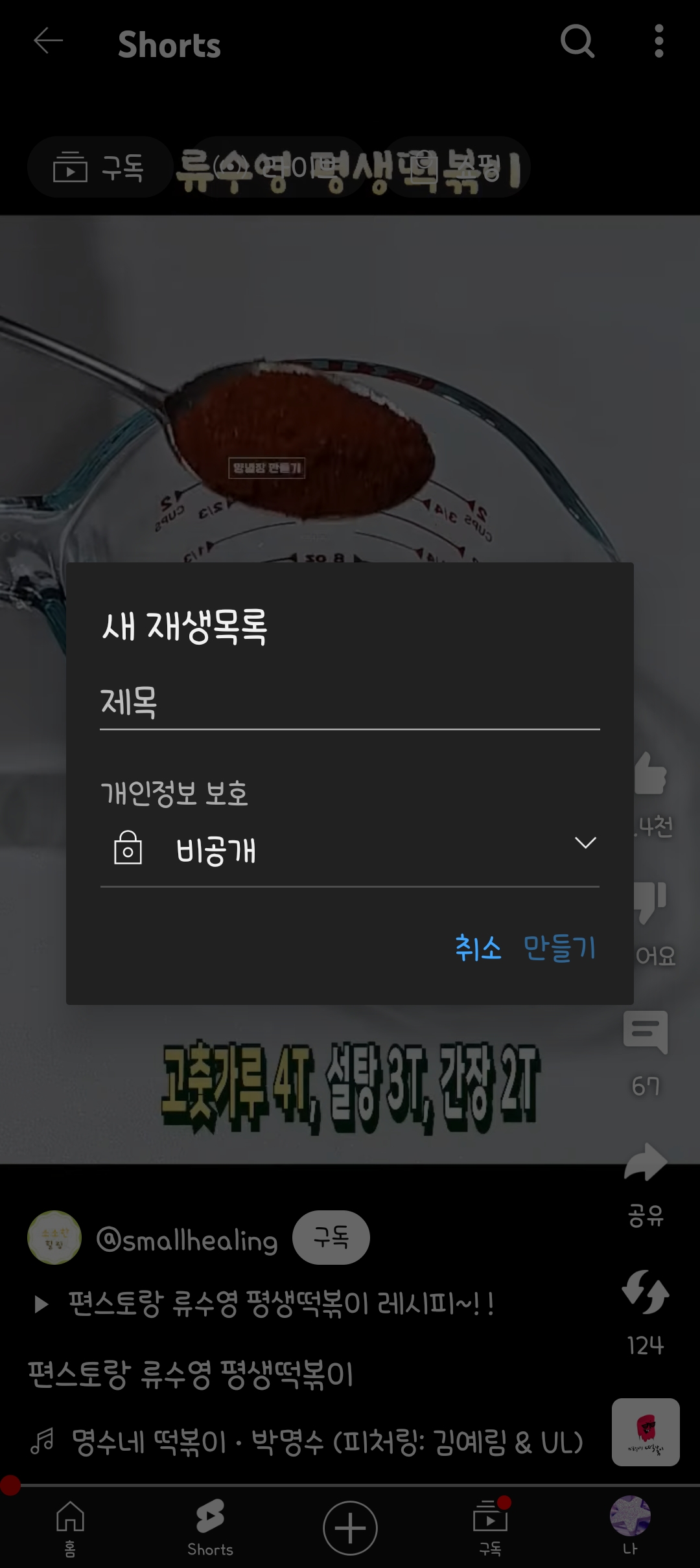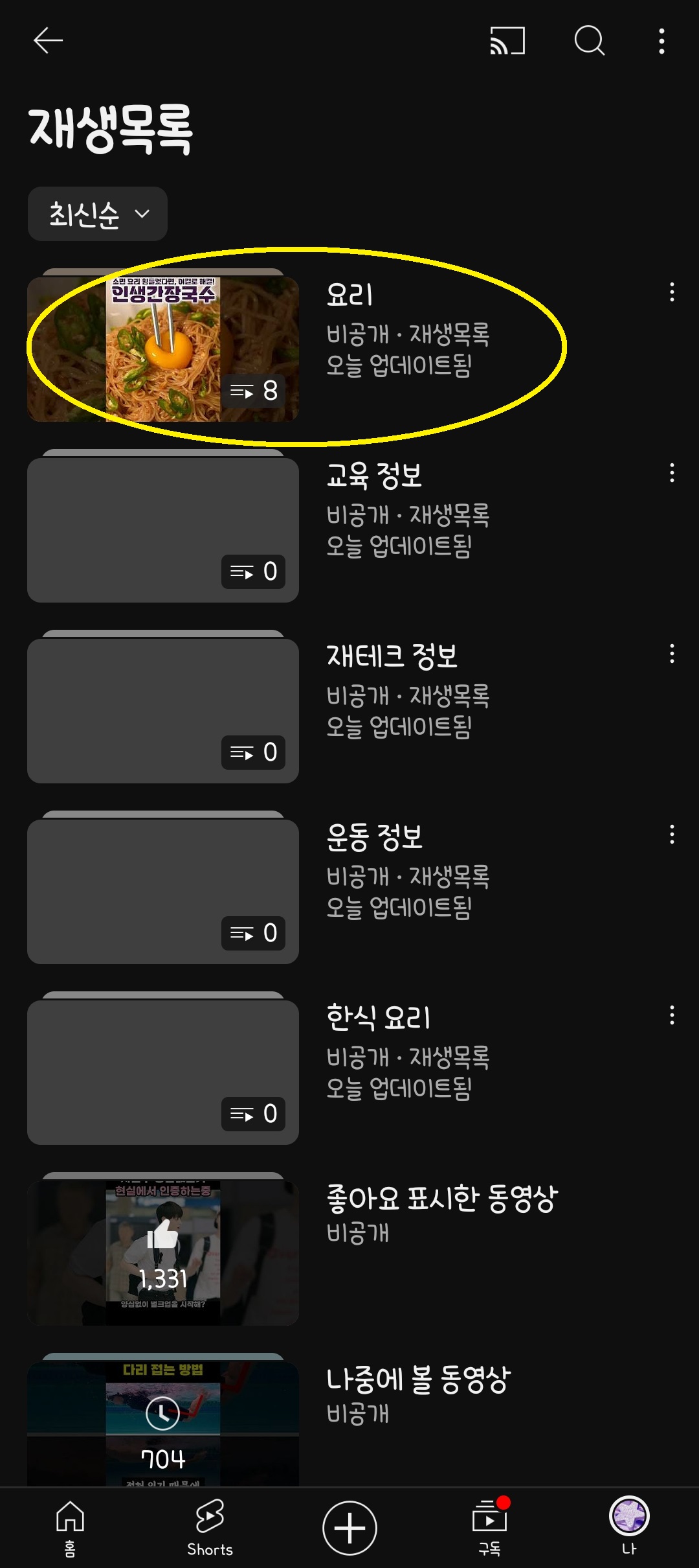 기존에 만들어 놓은 재생목록이 있으면 선택해도 됩니다.