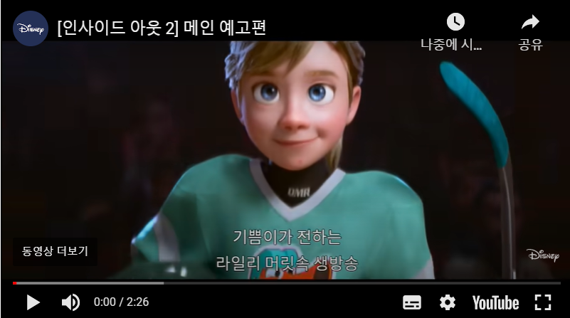 혹시 인사이드 아웃1을 안보신 분들이 있다면 보는 걸 추천드립니다.