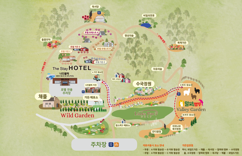 그리고 카페와 키친, 정원과 산책로가 있습니다.